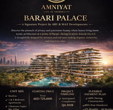 Amniyat is a trusted Dubai real estate investment platform connecting global investors with premium residential and commercial properties through verified, DLD-compliant developers aligned with Dubai government norms.